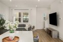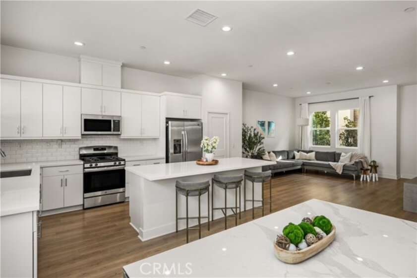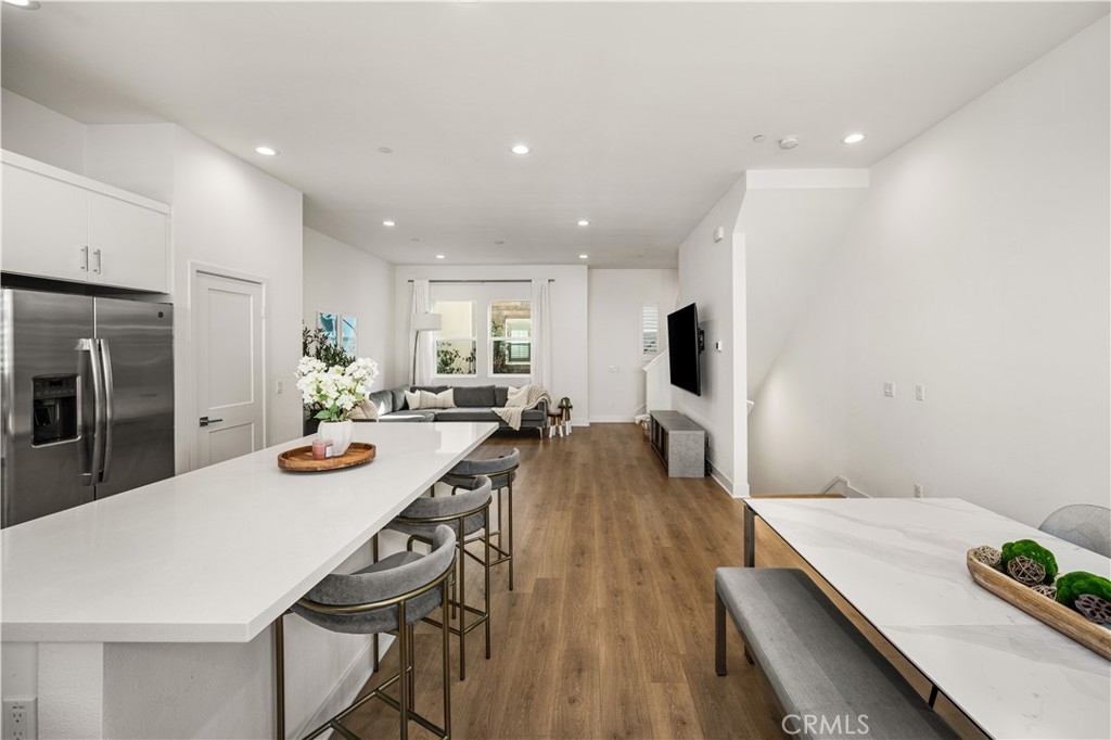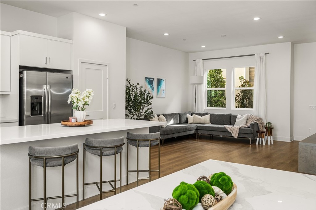 Built in 2019, this beautifully designed three-level townhome blends modern style with warm, inviting spaces that feel instantly like home. Thoughtfully laid out for both comfortable living and effortless entertaining, every level offers something special. The main living floor welcomes you with a bright, open-concept layout where the living room, dining area, and kitchen come together in a seamless space filled with natural light. The kitchen is a true centerpiece, featuring crisp quartz countertops, sleek self-closing cabinetry, and an oversized island perfect for gathering with friends, hosting dinners, or enjoying your morning coffee. The clean, all-white design gives the space a timeless, fresh feel that pairs beautifully with the durable vinyl flooring that runs throughout the home. Upstairs, the generous primary suite feels like a peaceful retreat, offering a spacious walk-in closet, expansive dual vanity, walk-in shower with beautiful designer tile flooring, and a private toilet room for added comfort. The 2nd bedroom completes the upper level, with ample space and an en-suite bathroom, making it perfect for visitors or multigenerational living. The first level offers a private work-from-home office space, ideal for remote work, a reading nook, or a creative studio. Just steps away is the attached two-car garage with well-maintained concrete flooring, providing both convenience and a polished finish. Central heating and air conditioning keep the home comfortable year-round. Outside your door, the community offers inviting shared spaces including a sparkling pool, BBQ area, and a children’s playground, creating the perfect setting for relaxing weekends and neighborhood gatherings. With easy freeway access and close proximity to shopping, dining, and everyday conveniences, the location makes daily life simple and connected. Stylish, welcoming, and designed for modern living, this home offers comfort, character, and the perfect place to entertain.