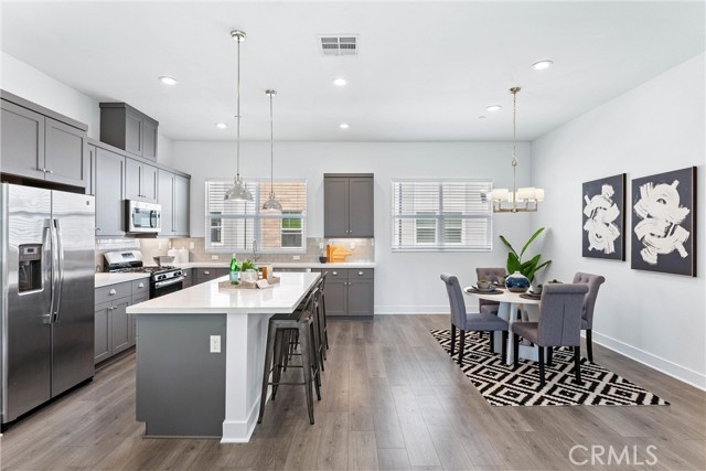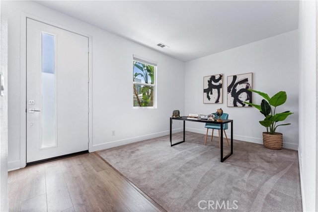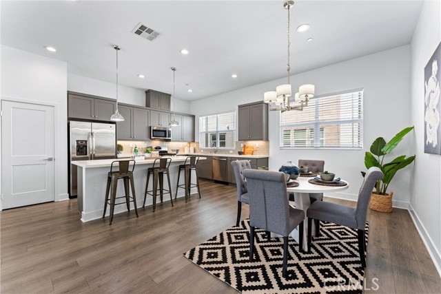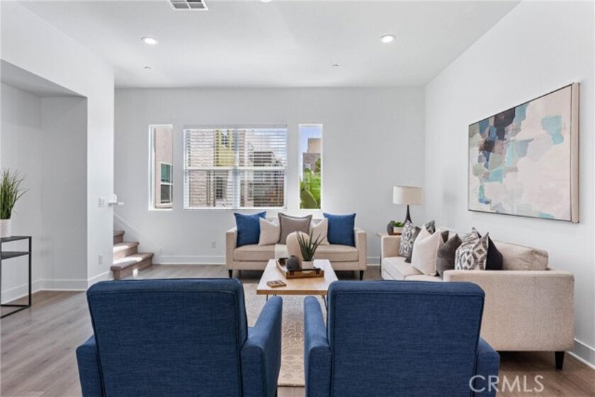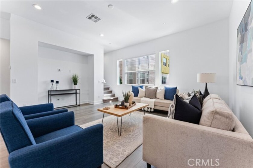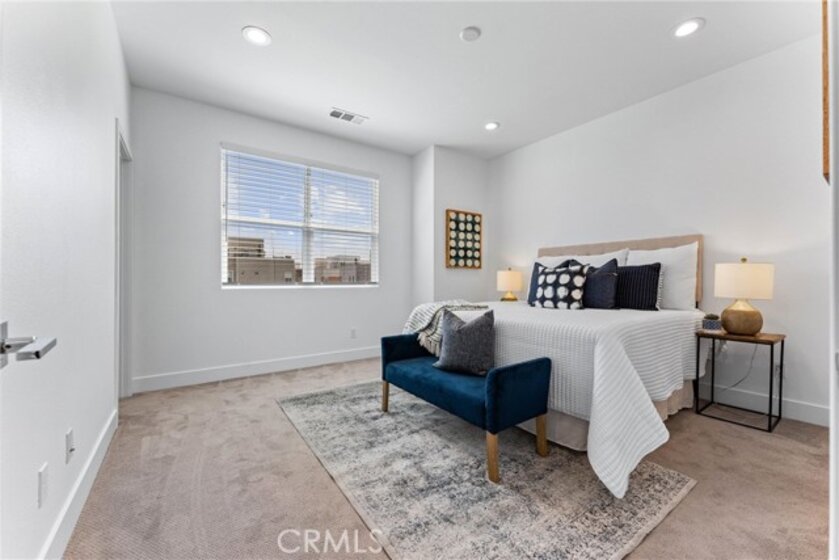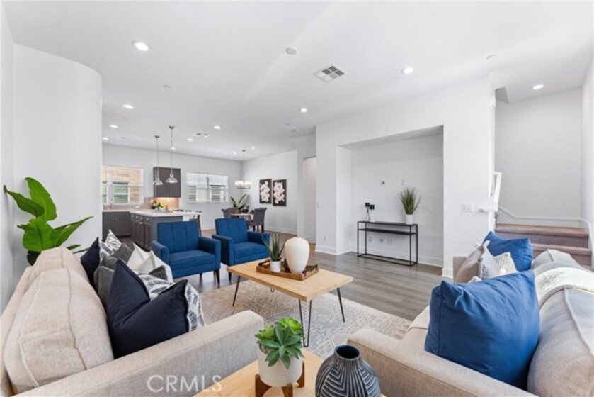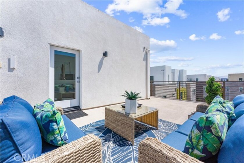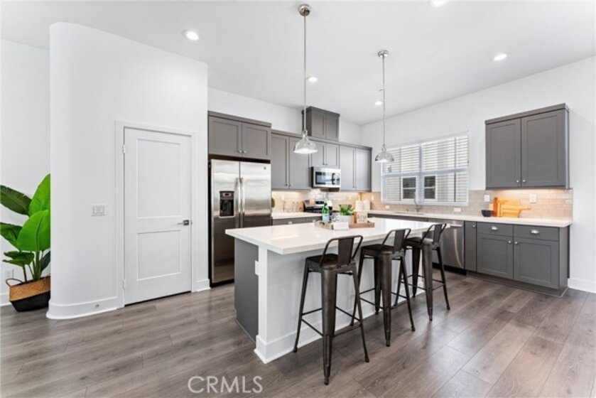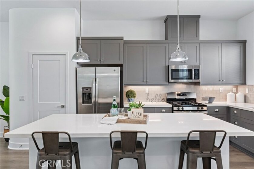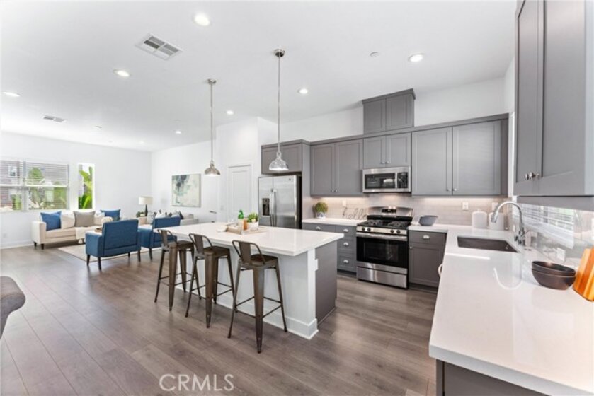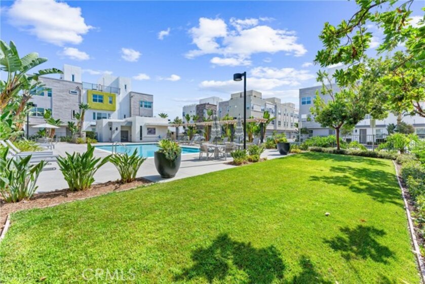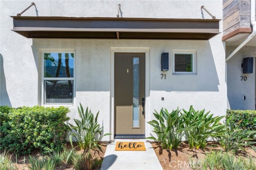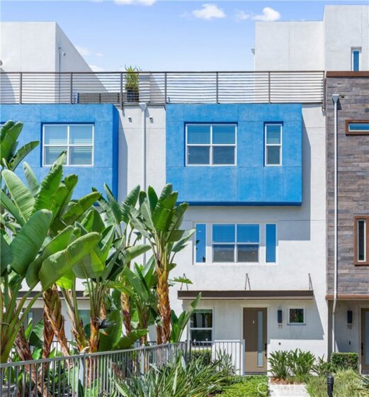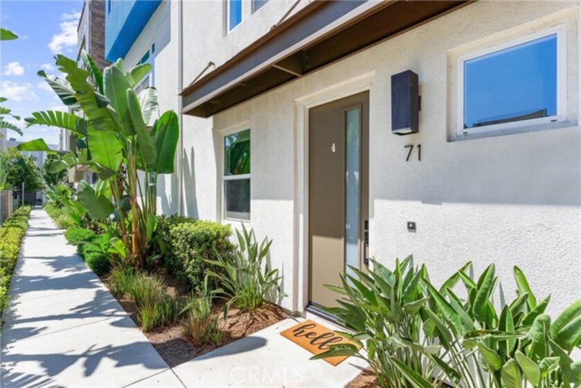 Bright. Modern. Move-in Ready. This is 949 E Mason Ln #71 — a stylish tri-level townhome in the heart of Anaheim’s Platinum Triangle. With nearly 2,000 sq ft of light-filled living space, this Trumark-built townhome showcases modern features across all 3 floors. Upon entry, you are greeted with a bright and spacious main floor flex space —perfect for your home office or gym—with its own half bath and direct garage access. Up the stairs you will find an open-concept kitchen, dining, and living area with clean lines, high ceilings, and quality finishes. The kitchen is outfitted with stainless steel appliances, quartz countertops, and sleek cabinetry—perfect for both entertaining and everyday living. All 3 bedrooms are on the upper level, including a spacious primary suite with walk-in closet and dual-sink bath. The showstopper? Your own private rooftop deck for lounging, hosting friends under the stars, and soaking up the SoCal sun. Additional amenities include an EV-ready 2-car garage with storage and a beautiful, resort-style pool and the location is hard to beat - minutes from Disneyland, the Honda Center & Angels Stadium, the up-and-coming OCVIBE and major freeways. Modern living, low maintenance, and a location that puts you in the mix. This one’s a must-see.