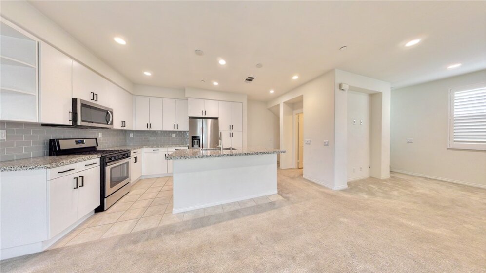 Experience modern living in this desirable corner-unit townhome located in the gated community of Tapestry Walk in Anaheim. Built in 2018, this three-story residence offers two-ensuite bedrooms that includes a walk-in closet and dual vanities for the Primary Ensuite. This thoughtfully designed 1,312 square feet home lends itself to great open space and exquisite natural light from its coveted corner lot. The bright, open-concept kitchen wraps around the striking quartz stone central island, accompanied by crisp white cabinets and classic subway-tile backsplash. The Stainless-Steel appliances shine throughout this open area which compliments the recessed lights and your higher than average, 9-feet tall ceilings. Conveniently, the home has interior Washer and Dryer appliances on the same floor as the bedroom and it is equipped with an Electric-Car Charger in the Attached Garage that comfortably fits two automobiles and space for storage. The community of Tapestry Walk provides a private, and secure, resort-style amenities that include a swimming pool, BBQ and picnic areas, bocce ball court, campfire spaces, and dog park. Residents also benefit from EV charging stations, overnight security, ample guest parking, and well-maintained landscaped grounds designed for both relaxation and social gatherings. In addition, the neighborhood is just minutes from major freeways and key destinations such as OC Vibe, ARTIC, Angel Stadium, the Honda Center, UCI Medical Center, CHOC Children’s Hospital, the Anaheim Packing House, and Disneyland Resort. This home is a perfect blend of comfort, style, and accessibility - come check it out before it’s gone.